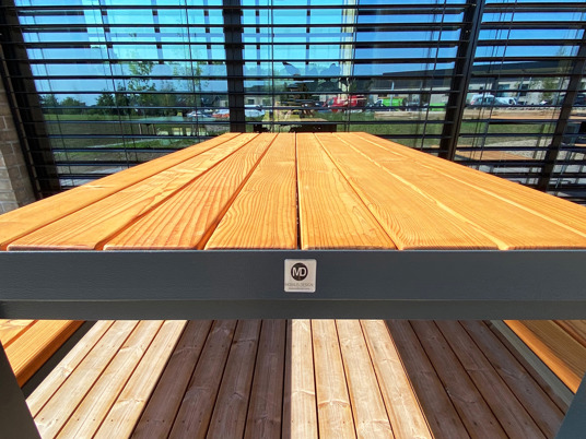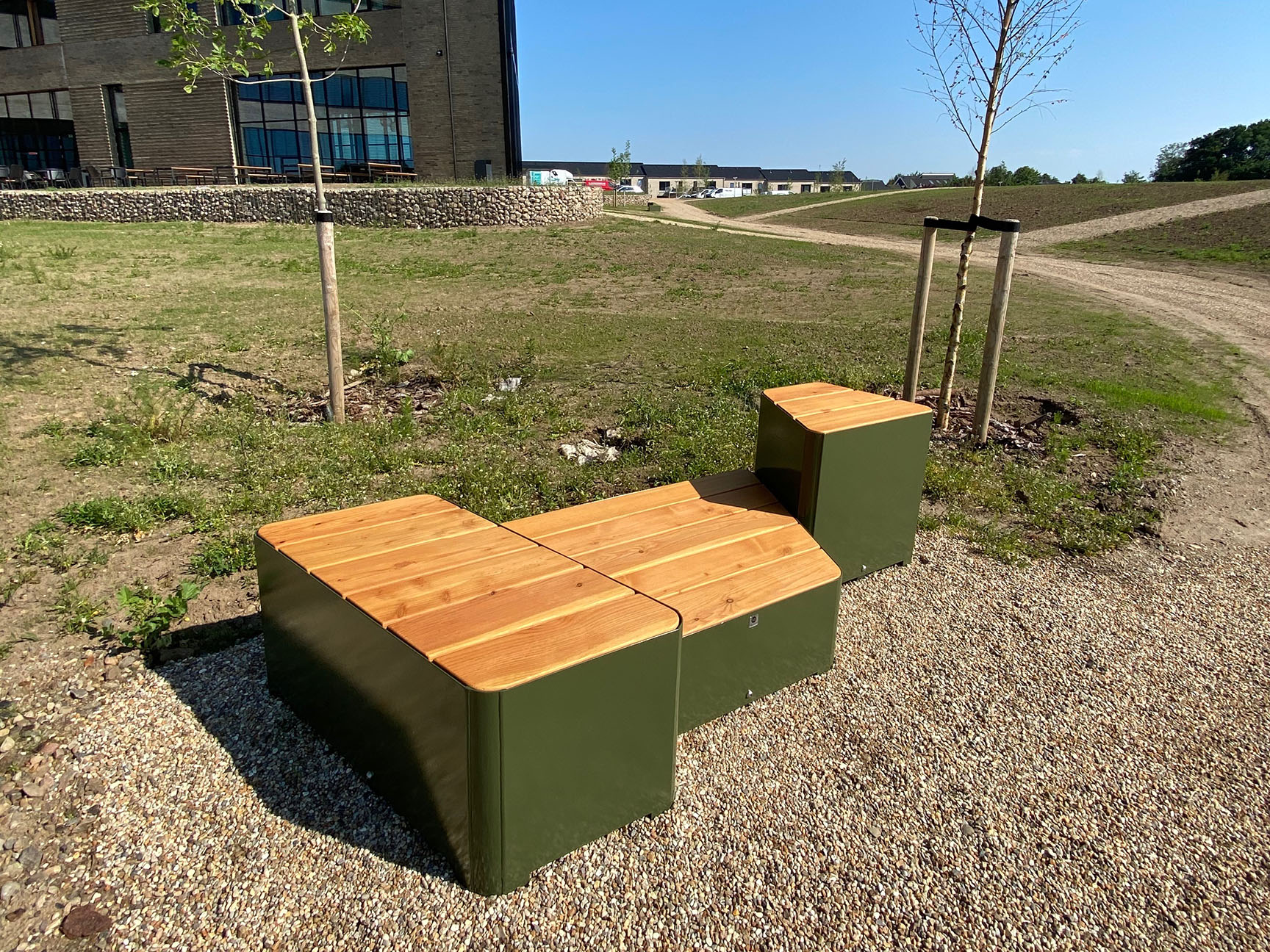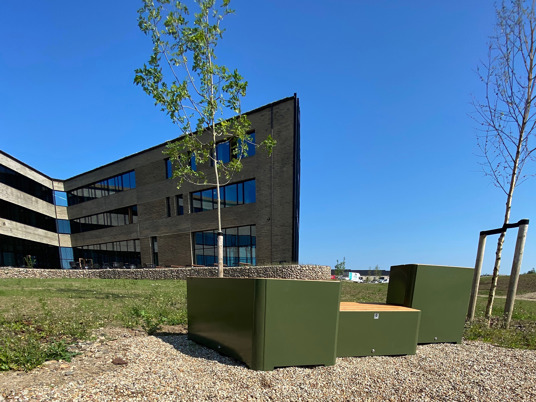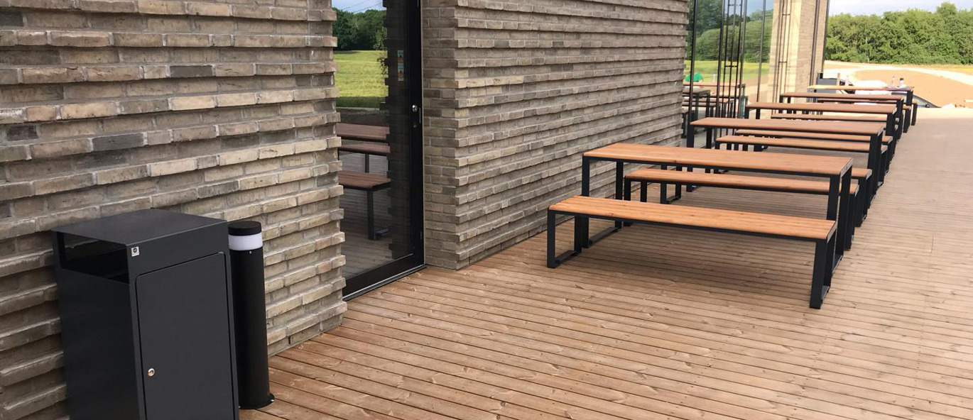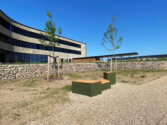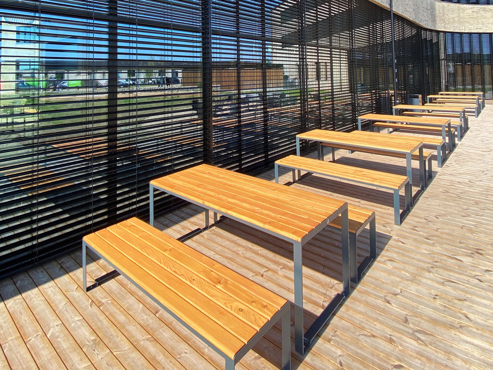 Till DLG’s nya uteplatser föll valet på produktfamiljen TUCANA, som med öppna sidor på bänkar och bord framstår som lätta och luftiga vid sidan om den stora byggnaden. De kompakta modulerna i familjen AQUILA valdes ut för att skapa små mötesplatser vid de omkringliggande stigarna.