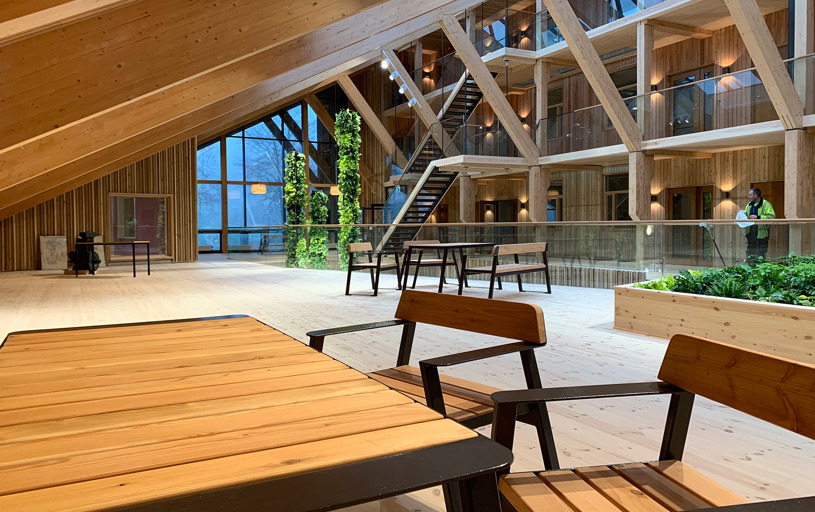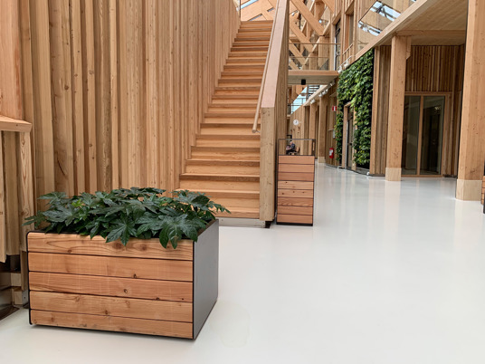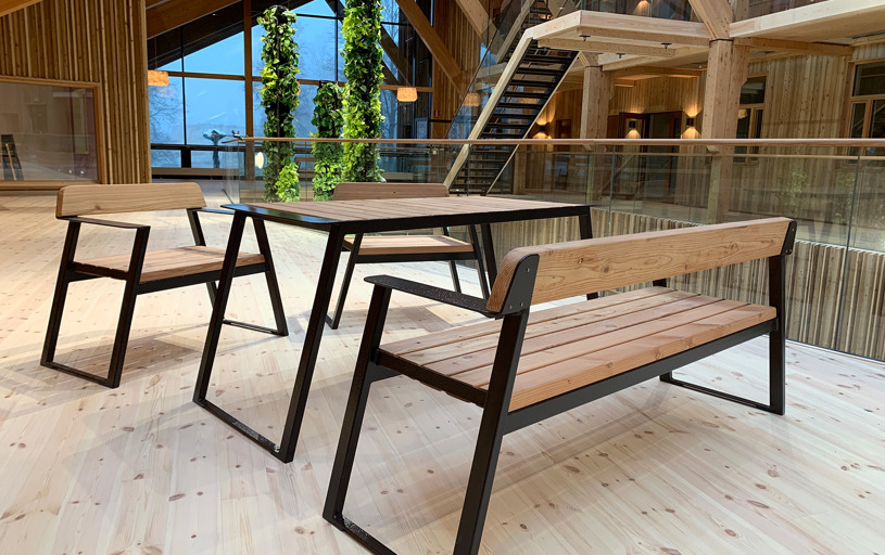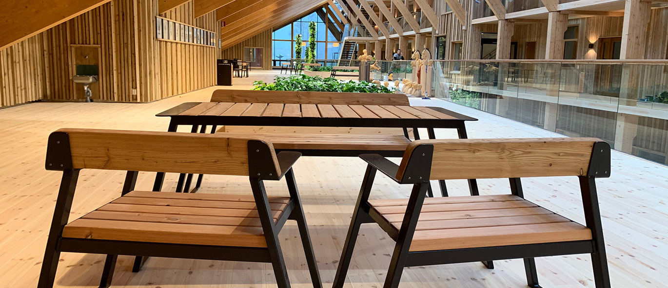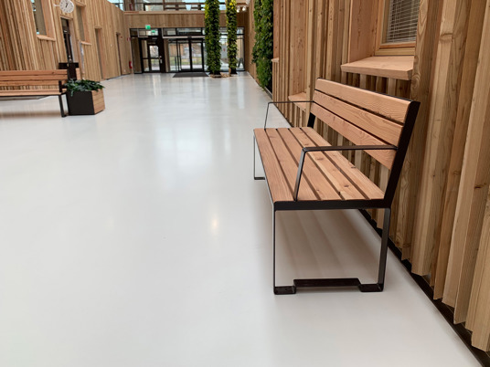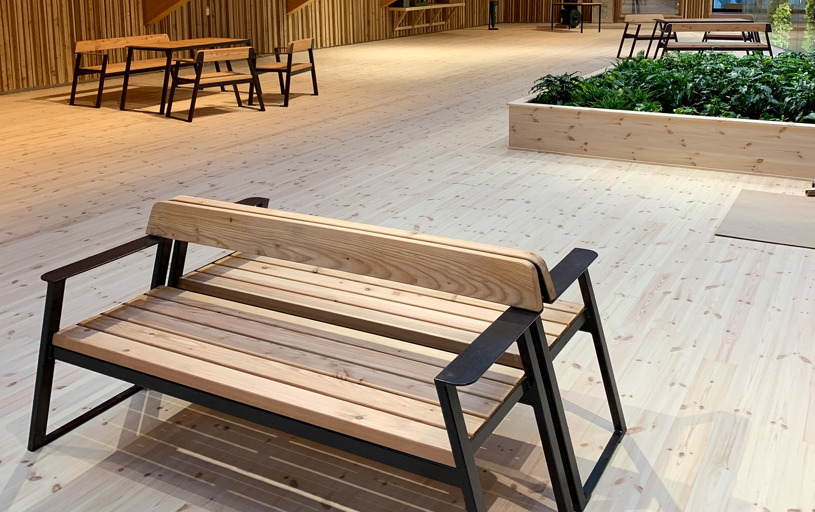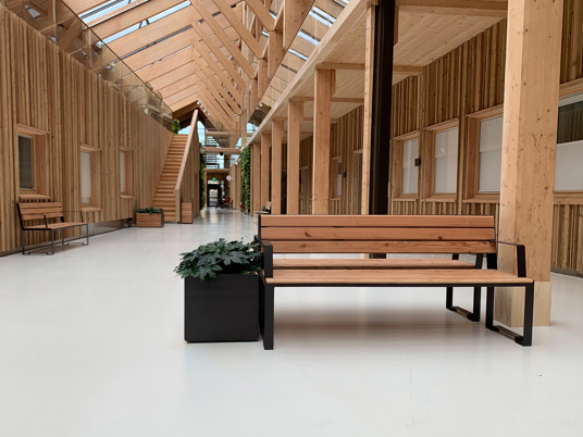 Även möbelfamiljen TUCANA finns representerad på Hälsocentrum i Lindesberg. En korridor är möblerad med TUCANA Soffa 4-sits med armstöd samt TUCANAs rektangulära Planteringskärl. Stålet är pulverlackerat i RAL 8019 Grey brown.