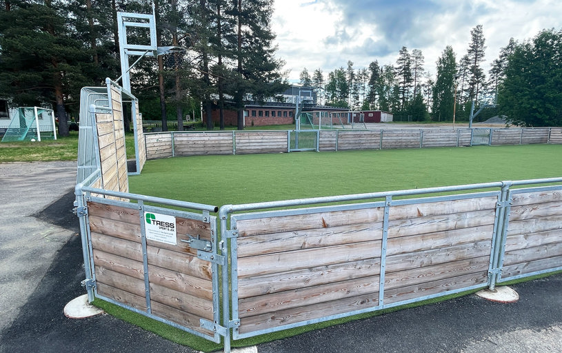 Under 2023 kom den efterfrågade multiarenan äntligen på plats. Vi på Tress levererade och monterade multiarenan, inklusive det härliga konstgräset, baskettopparna och arenamålen. Arenan används nu dagligen av barn i alla olika åldrar både på rasterna, under eftermiddagsfritids och i skolidrotten. Det har även blivit helt naturligt att nyttja arenan och spela olika bollsporter på kvällar och helger.