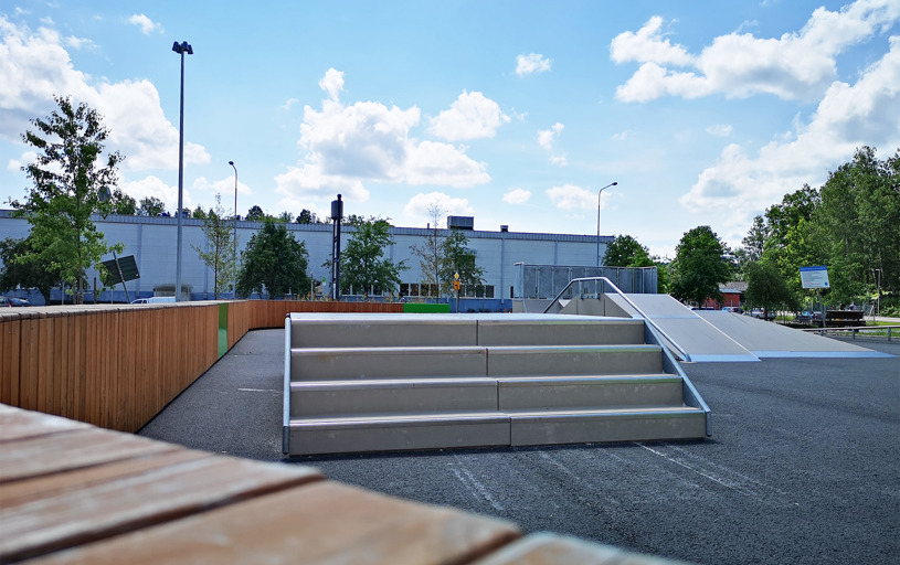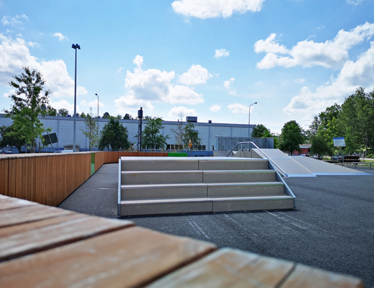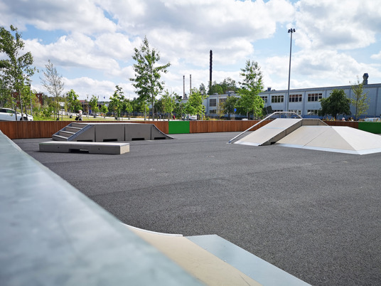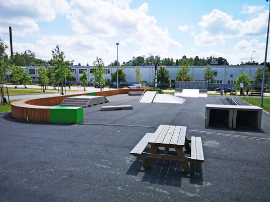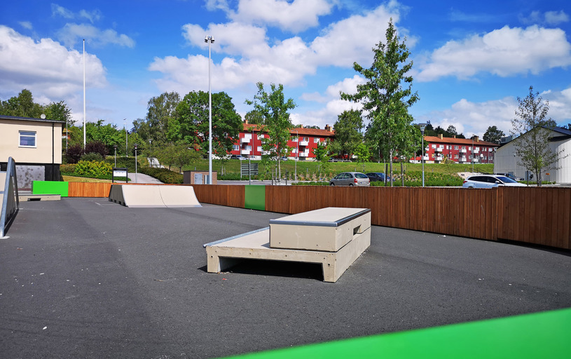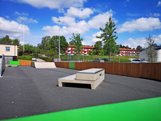 Oavsett om du åker skateboard, inlines eller kickbike kan du sysselsätta dig många timmar. Parken erbjuder underhållsfria och ljuddämpande moduler som ramper, boxar och rails.