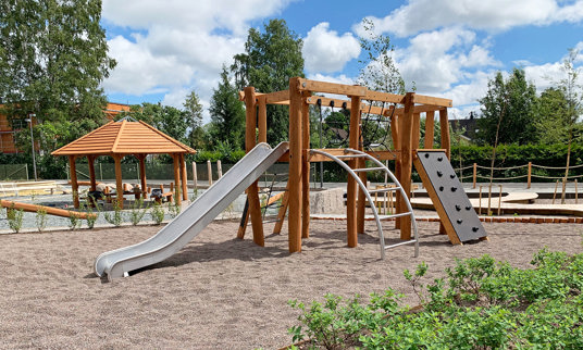 Helhetsintrycket av den nya skolgården är inbjudande och inspirerande, både för personalen och alla barnen.