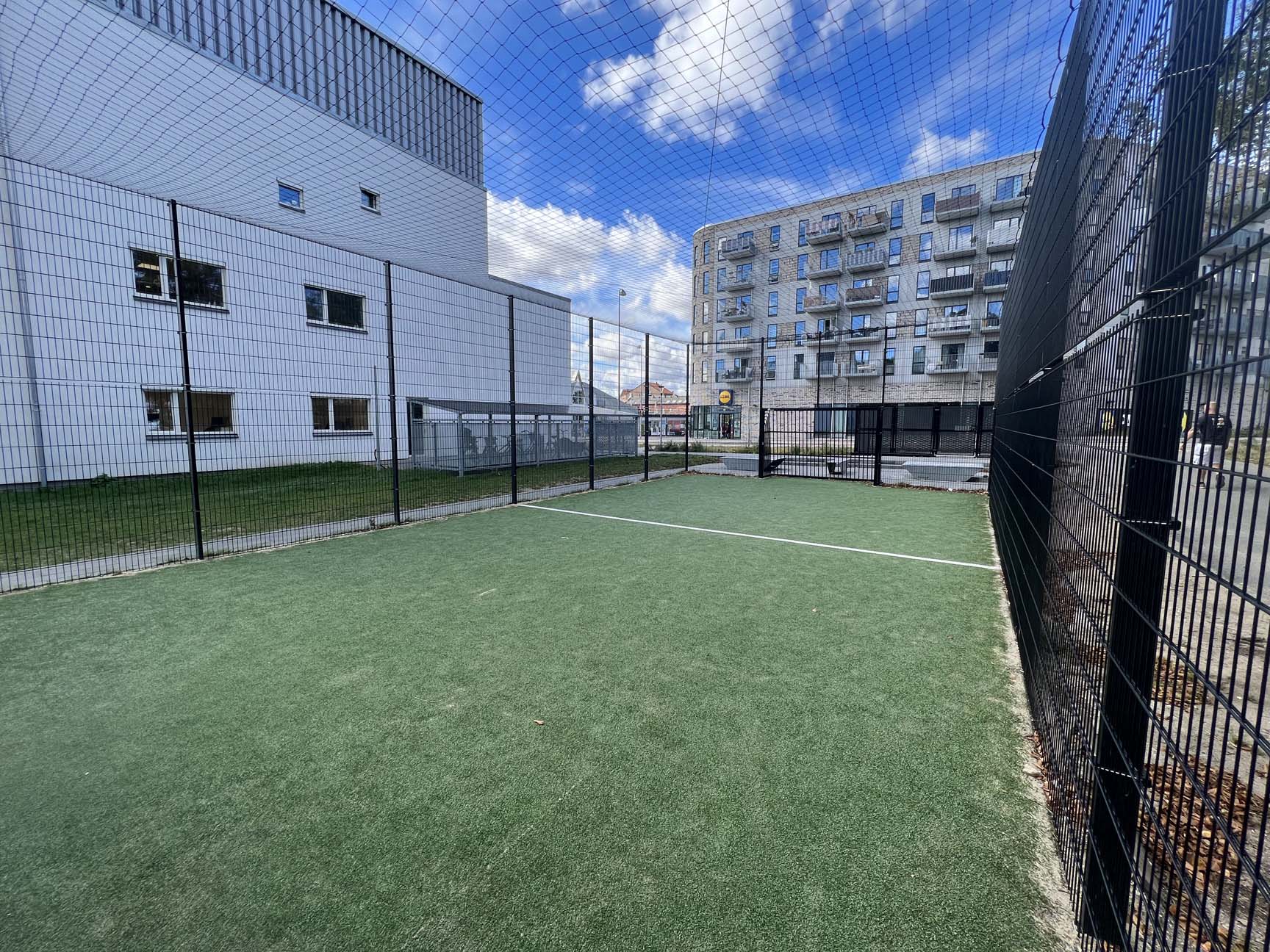 Multiarenan har ett flott och modernt uttryck som passar fint in i omgivningarna. Det svarta stålet och gröna konstgräset är en säker vinnare!