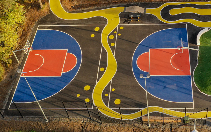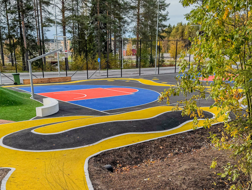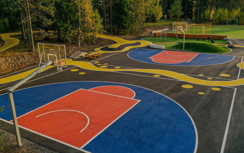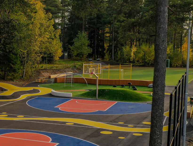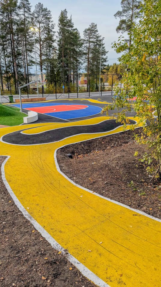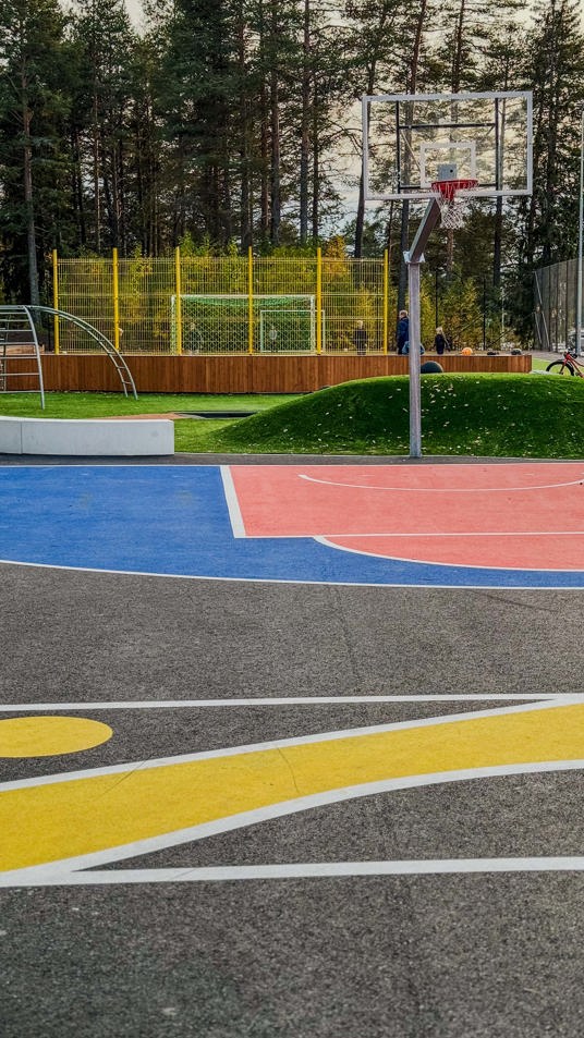 Arenan gör verkligen skäl för epitetet “multi” då här finns plats för många olika aktiviteter; fotbolls- och basketplan, skateboard- och kickbikebana och streetbasketkorgar.