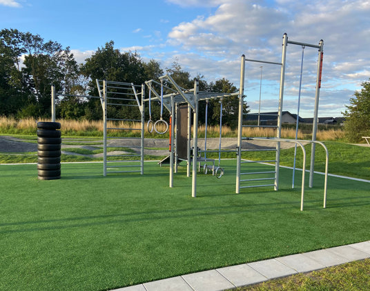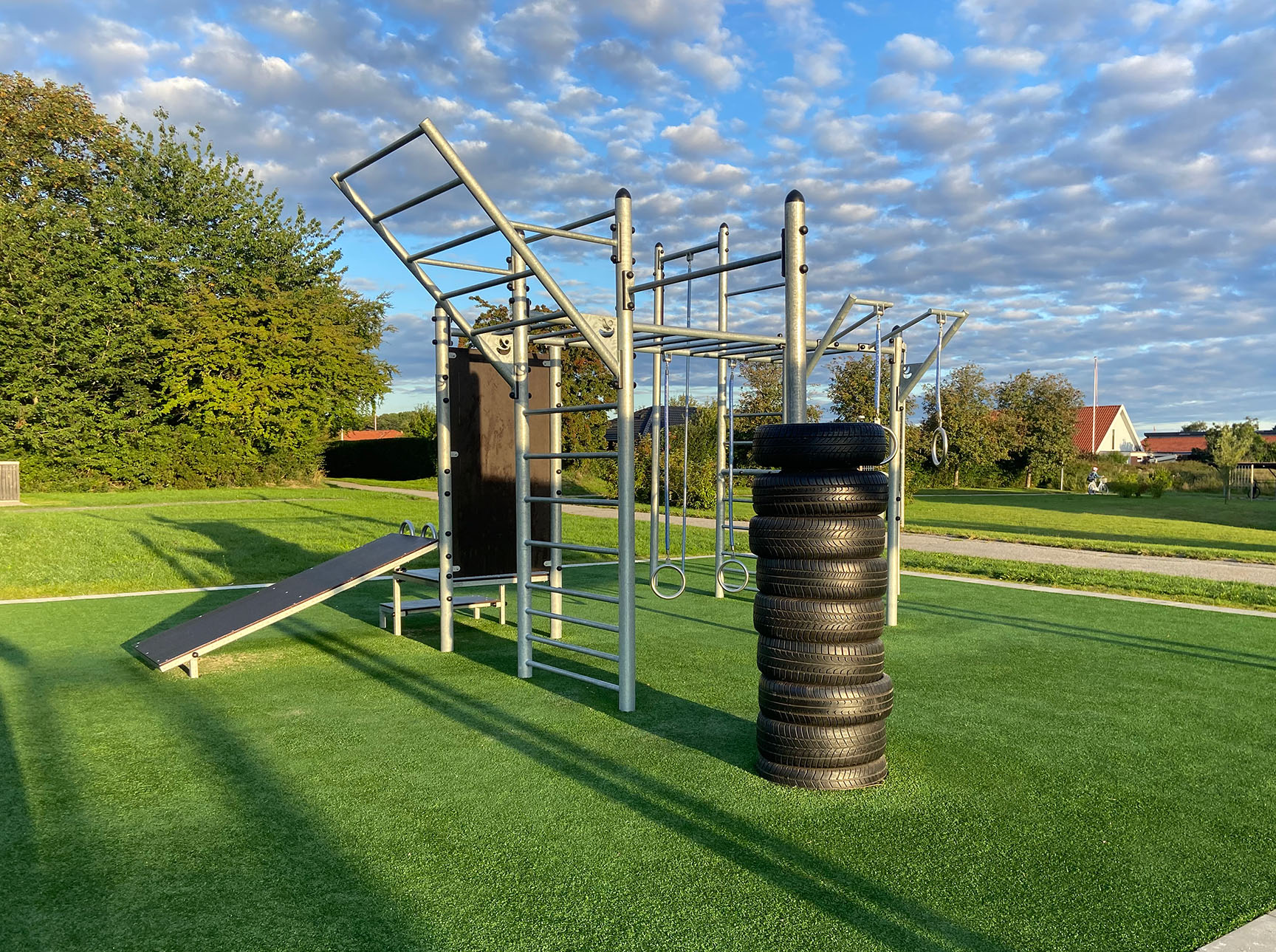 I Romalt nära Randers i Danmark har ett tråkigt grönområde vid Romalt Aktivitetshall förvandlats till en inbjudande aktivitetspark med plats för både lek, rörelse och rekreation. Här kan alla besökare nu aktivera sig med olika bollspel på multiarenan, träna på utegymmet, spela bordtennis eller bara koppla av på bänkborden under solseglet.