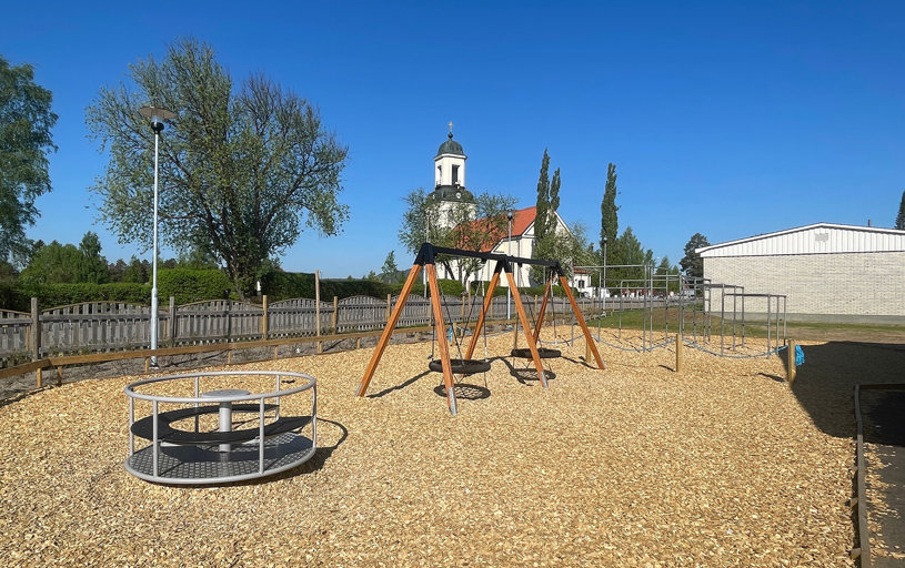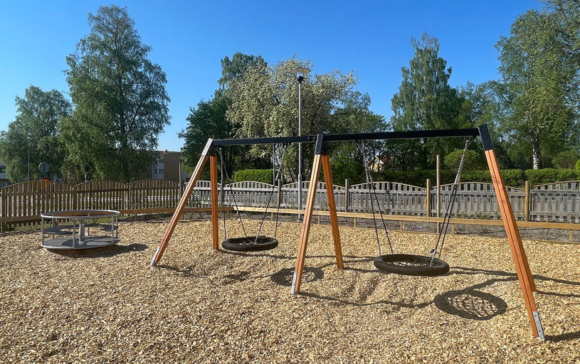 Lekytan var väl nedgången med gammal lekutrustning som behövde bytas ut. Så 2016 monterade vi en ny parkourställning, gungställning och karusell. Det blev en super-populär lekplats som nu använts dagligen under 8 års tid.