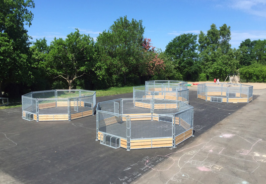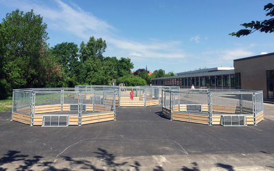 Panna-arenorna skapar liv och rörelse på skolgården för de yngsta eleverna – och kan användas till många olika aktiviteter och lekar samt som undervisningsplats utomhus för en mindre grupp elever.