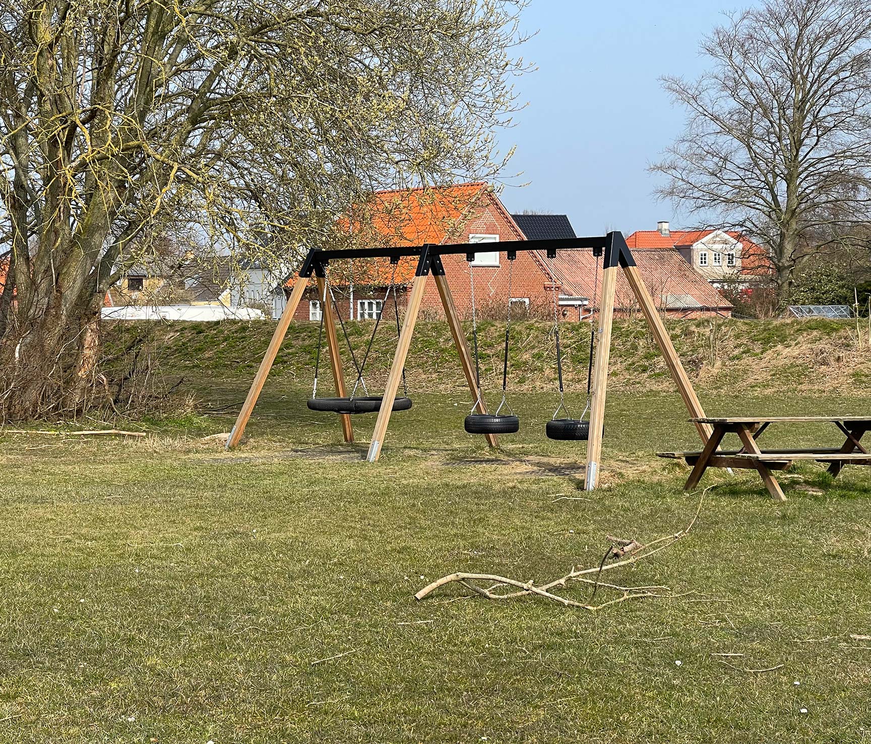 Hørup Centralskola i Sydals har en utegård med dedikerade bollspelsaktiviteter för både yngre och lite äldre elever samt gemensamma utrymmen med gungor för alla.