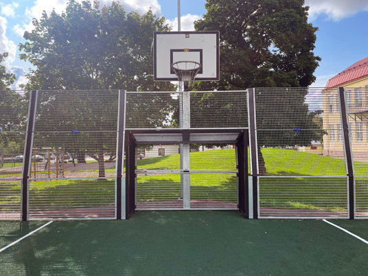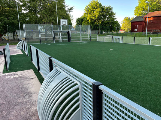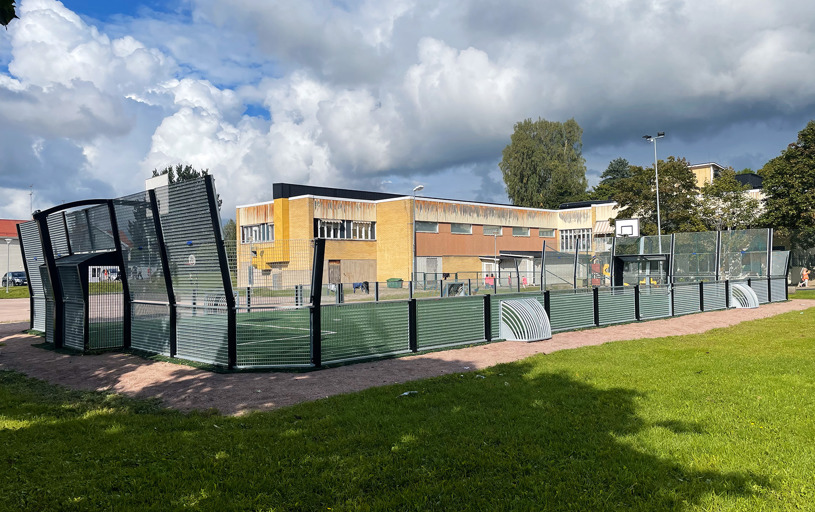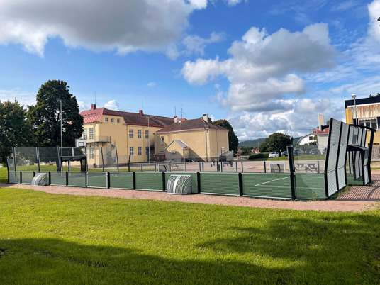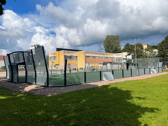 Den tidigare helt tomma ytan på Solberga Skola är nu fylld av spontan idrott och rörelseglädje. Denna omnistadium kan bland annat användas till basket, innebandy, landhockey och fotboll. Både på längden och på tvären av arenan. Det gör att olika aktiviteter kan pågå samtidigt.