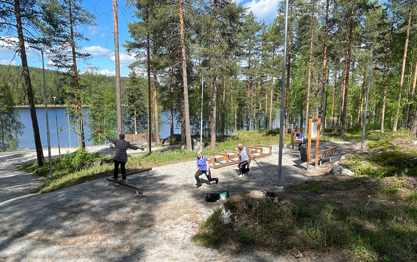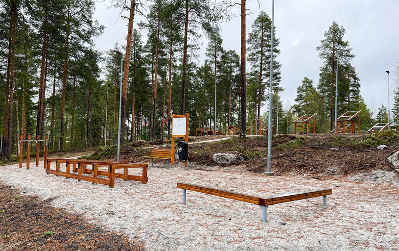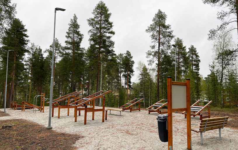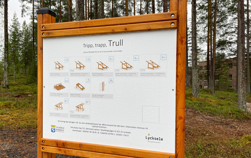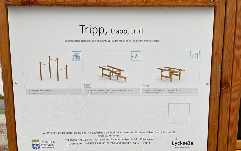 Utegymmet är anlagt i tre olika etager som erbjuder olika typer av träning. Längst ner finns Tripp med tillgänglighetsanpassad utrustning. Nästa nivå har fokus på balans och rörlighet. Högst upp har vi styrketräningsavdelningen. Flera av träningsstationerna har extra vikter så att alla kan träna på sin nivå.