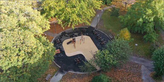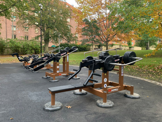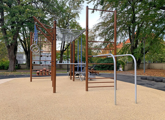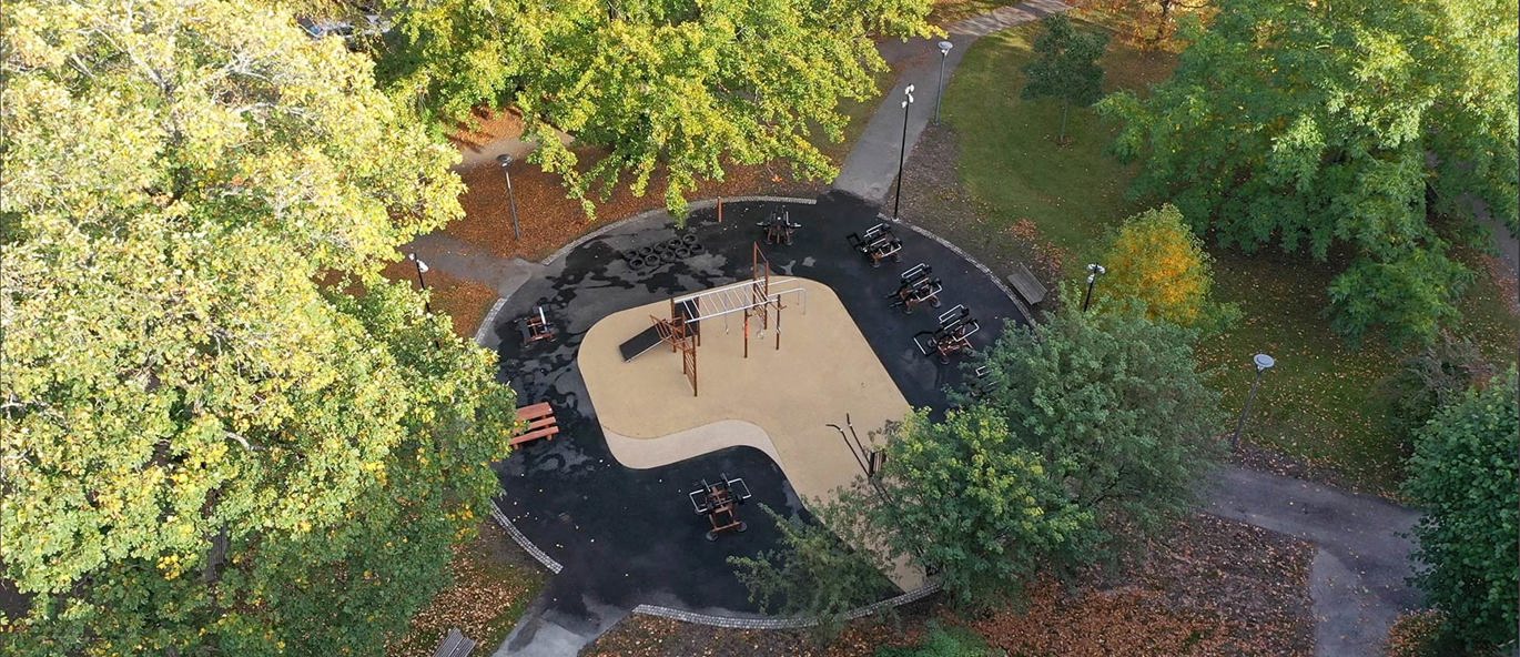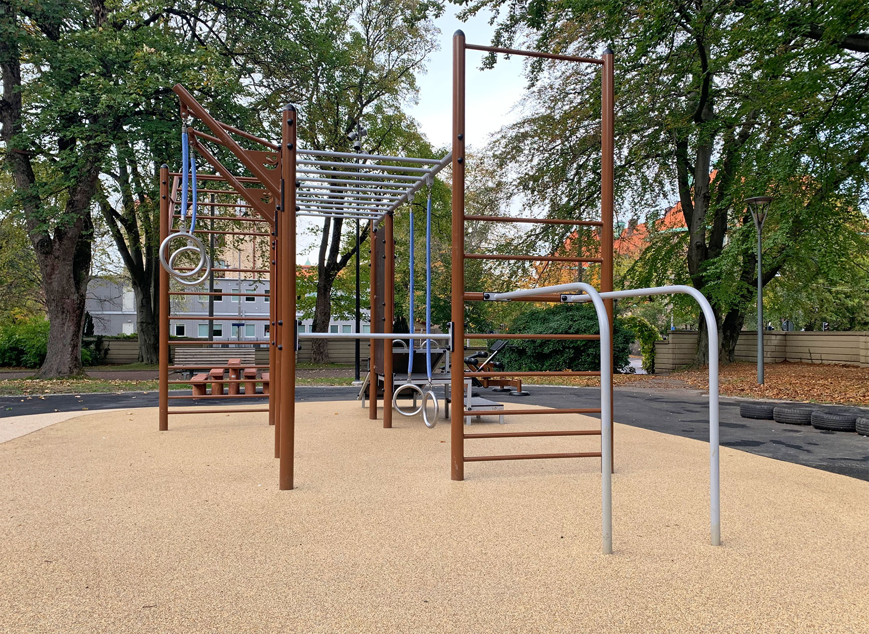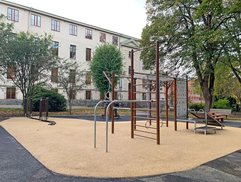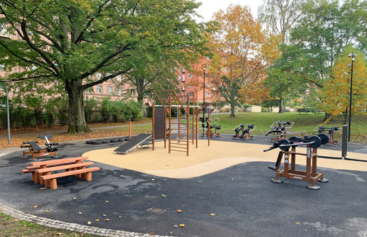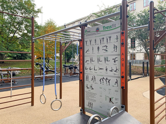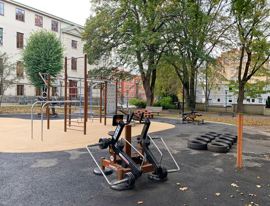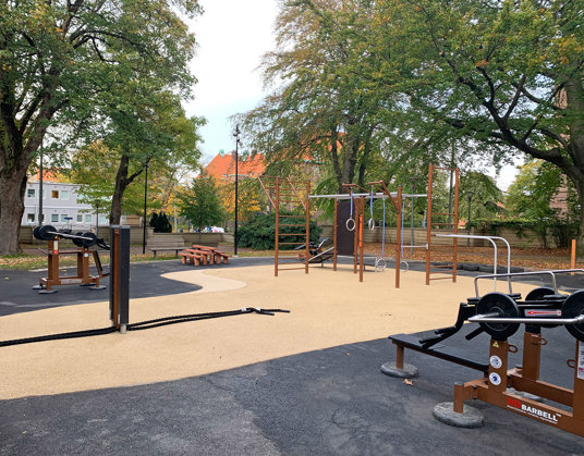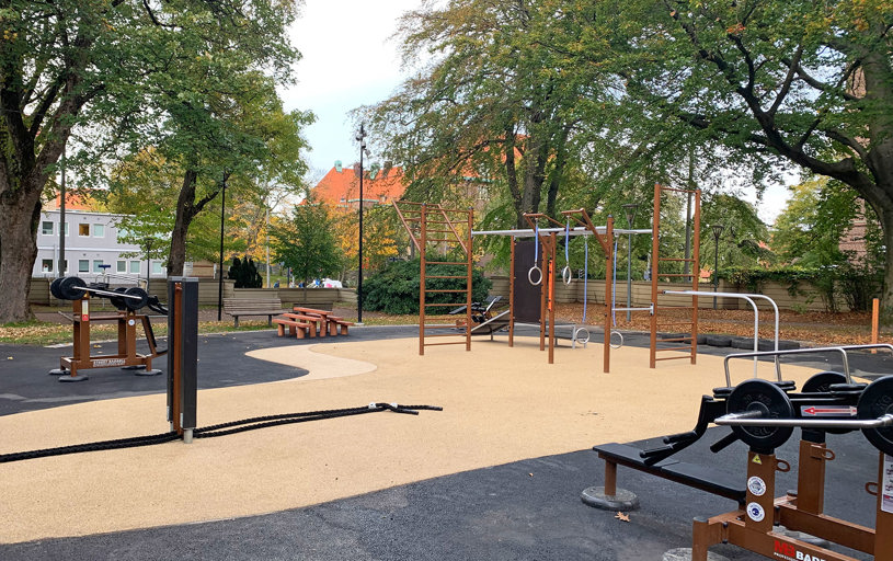 Utrustningen valdes med omsorg, för att alla ska hitta sin träningsnivå och kunna variera övningarna. I mitten tronar träningsställningen TressFit där skonsam träning med egen kroppsvikt kan utföras. Runt omkring placerades olika styrketräningsmaskiner där vikterna justeras i ett slutet och säkert system. Ett varv här och du har tränat styrka med hela kroppen. Med frisk luft i dina lungor och nytt syre i hjärnan har du nu bättre förutsättningar att prestera på topp resten av dagen.