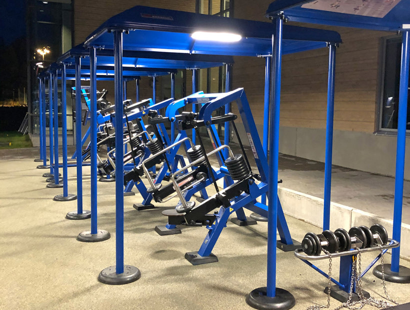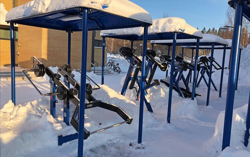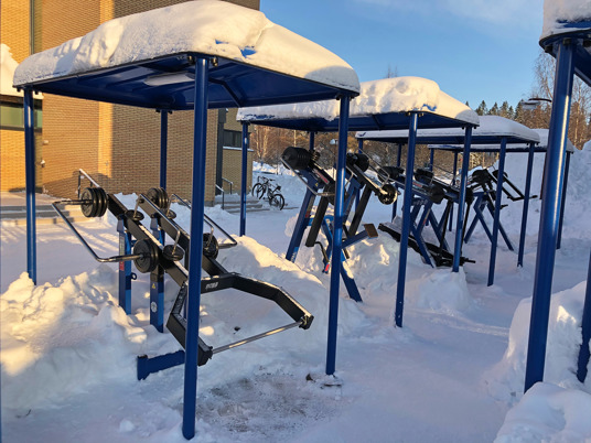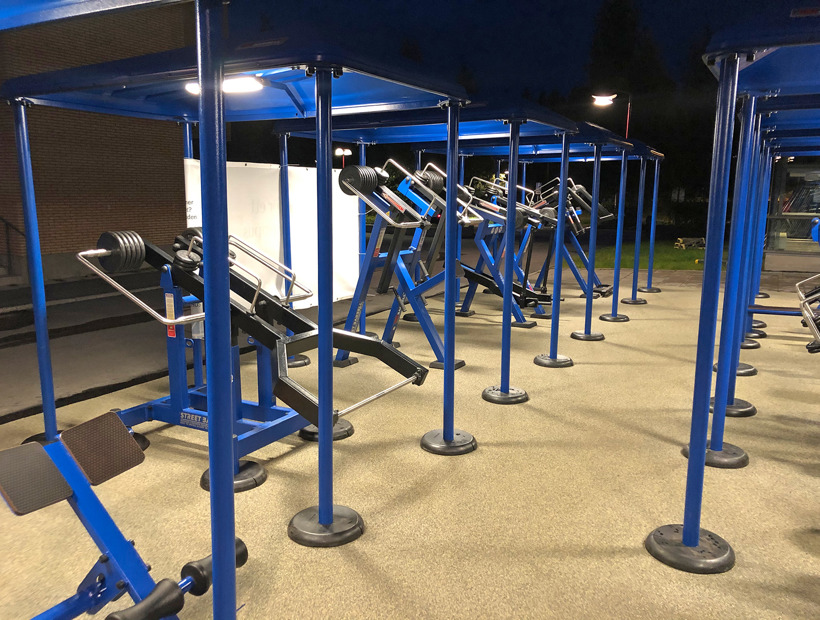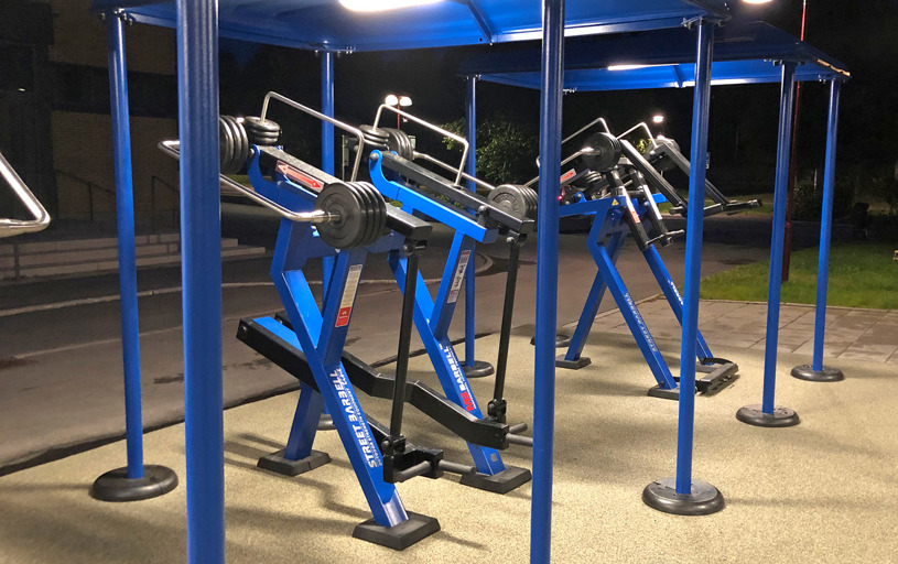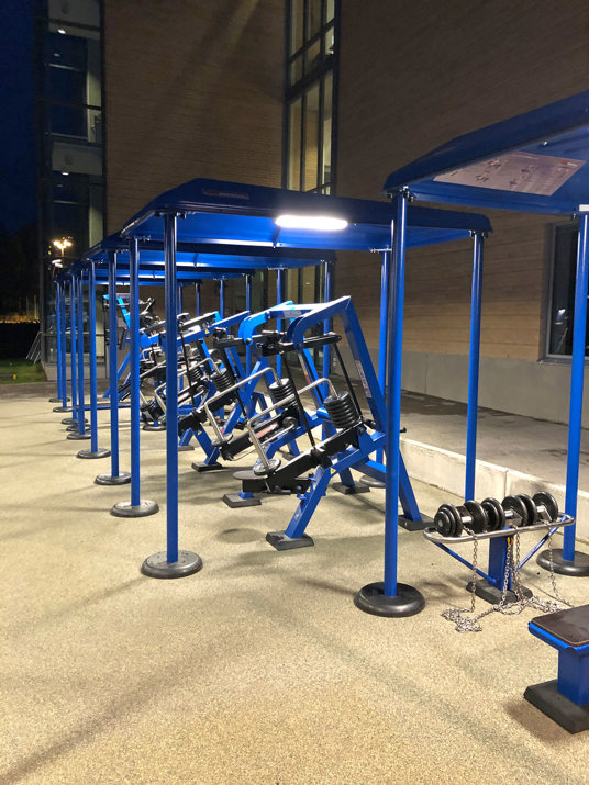 De 10 träningsmaskinerna är utrustade med både tak och belysning vilket gör att man kan träna även vid dåligt väder och på kvällstid. Belysningen ger också en trygghet för utövaren då området lyses upp på ett bra sätt. Gummiytan på golvet ger ordentligt fäste och man känner sig säker och stabil då man tränar. Just nu under den rådande pandemin är det också fler som vill träna utomhus och inte vågar träna inomhus på samma sätt som tidigare. Och visst känns det bättre att vara ute i friska luften när man tränar!