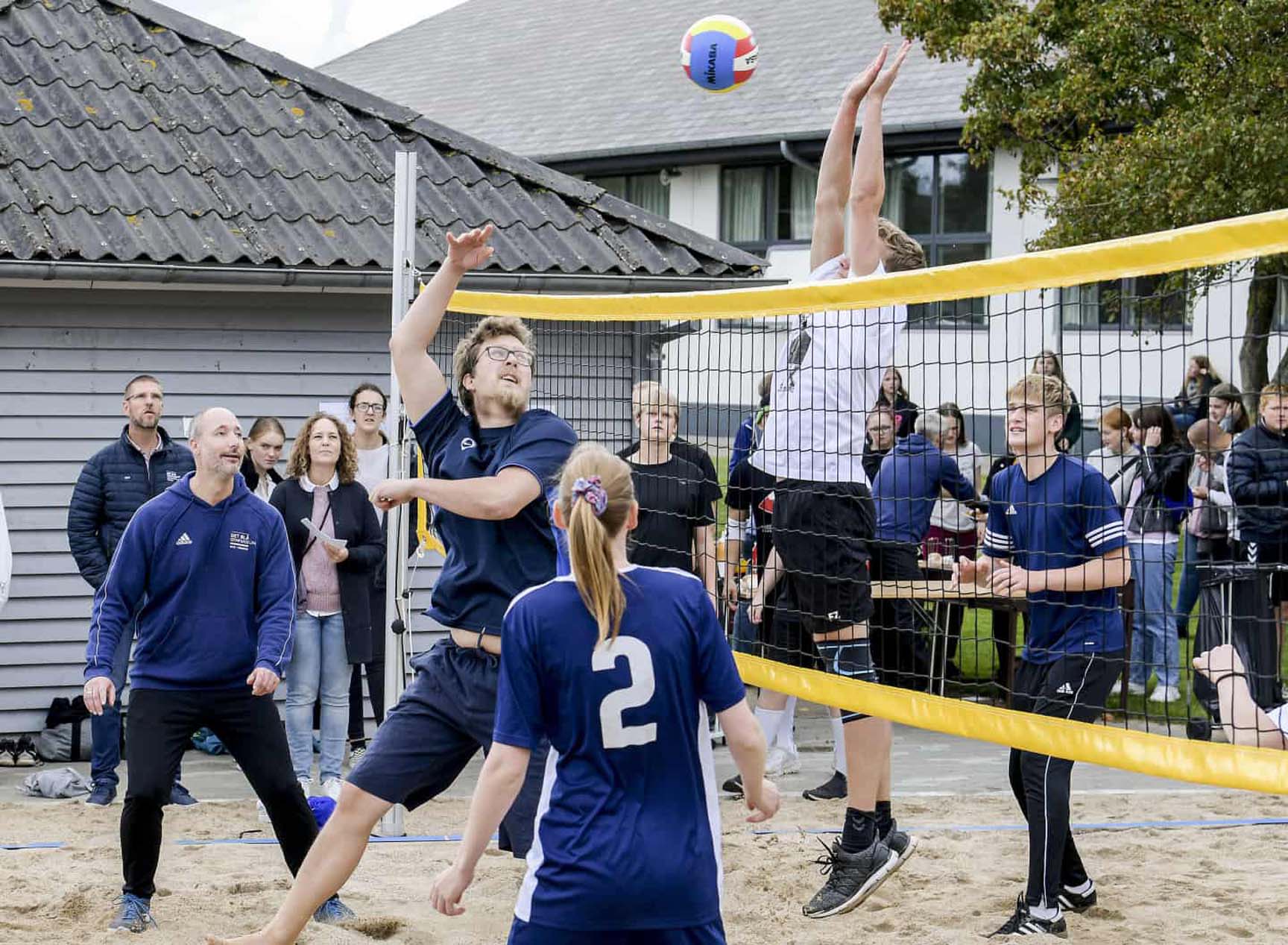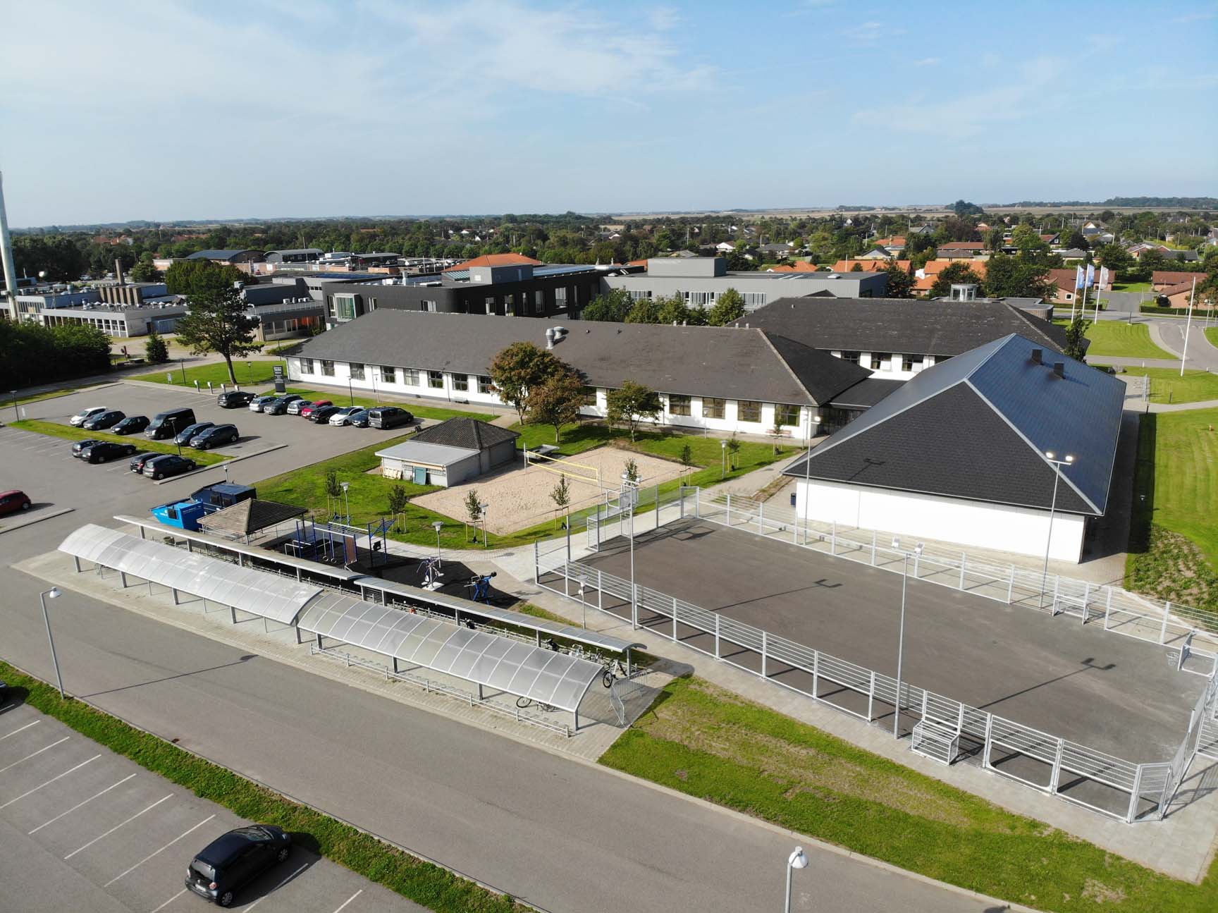 Beachvolleyboll kan spelas av alla – både erfarna och nybörjare – och är därför en populär aktivitet i offentliga områden. Aktivitetsområdet på Det Blå Gymnasium i Tønder är utrustat med lampor som gör det möjligt att använda både beachvolleybollplanen och utegymmet i mörkret.
