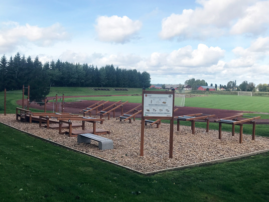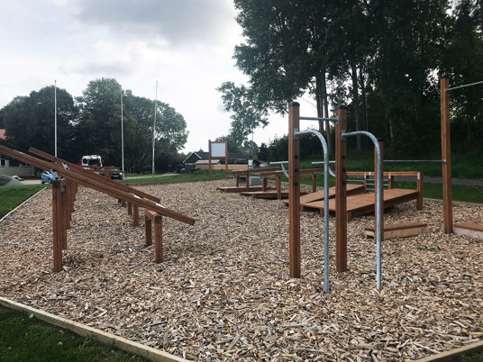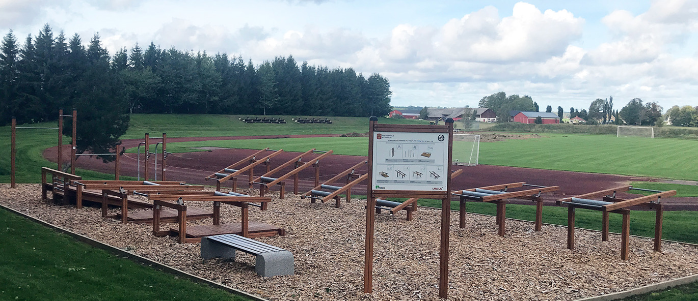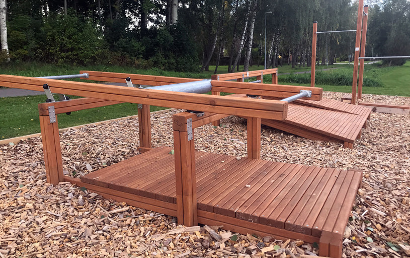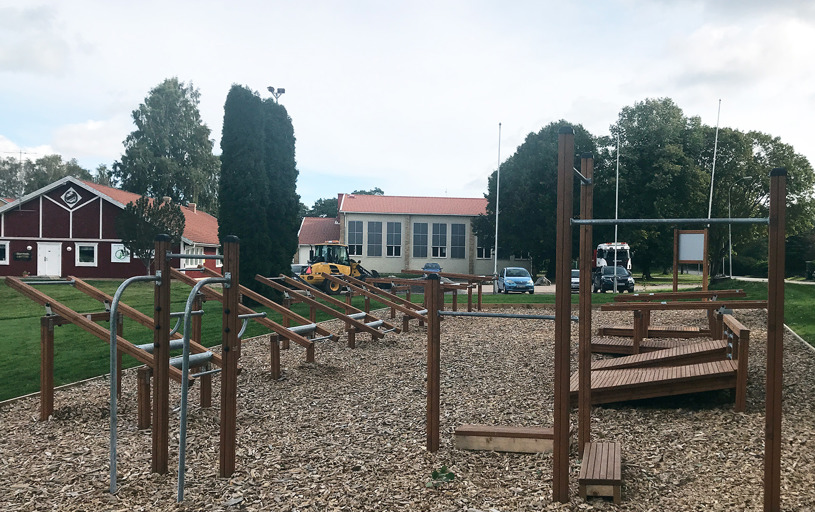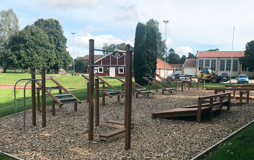 I detta utegym finns en standarduppsättning av redskap för en allsidig träning. Här kan elever från skolan och idrottare från den närbelagda idrottsplatsen göra bänkpress, knäböj, marklyft, axelpress med mera. Det finns även instruktionsskyltar till varje redskap.