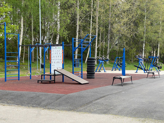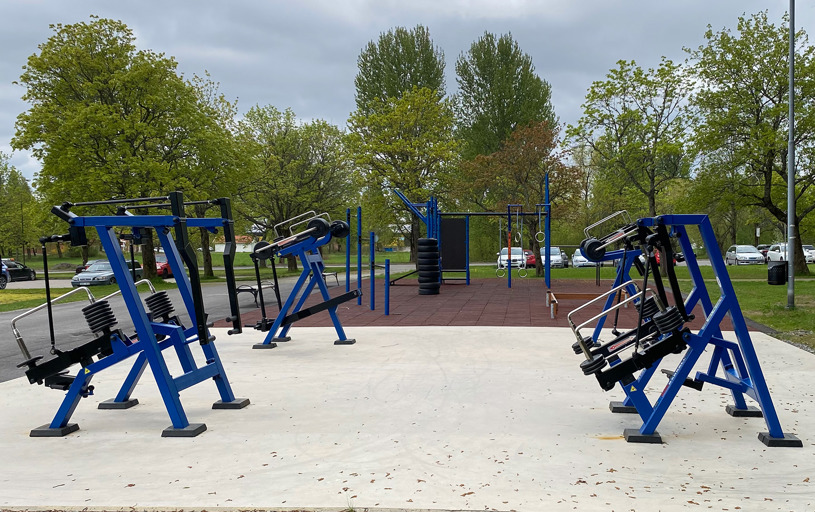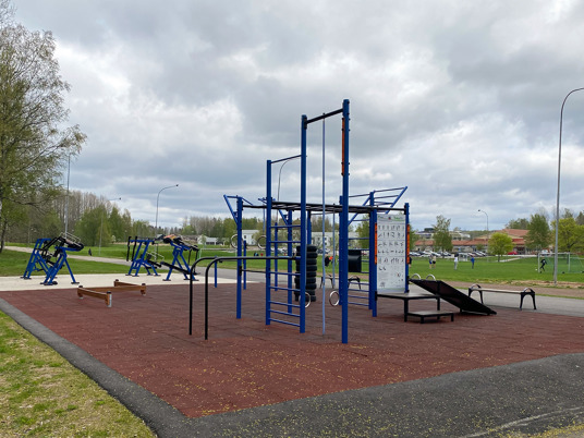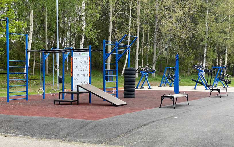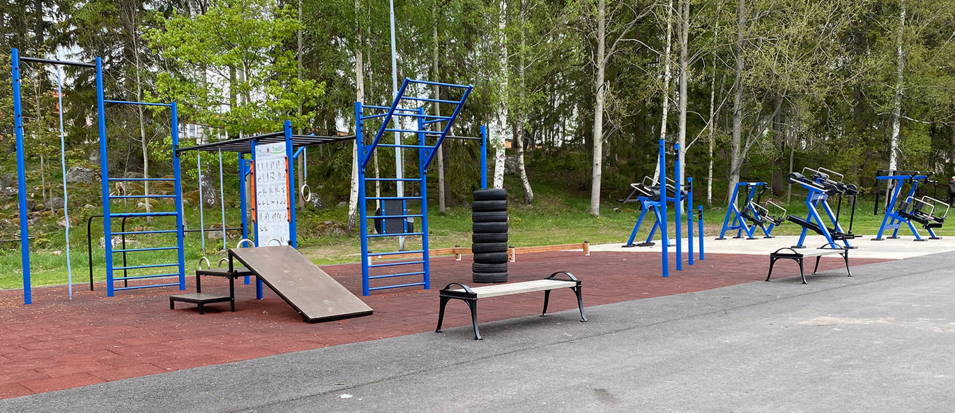 Ett utegym som erbjuder något för alla. Styrketräningsmaskinerna har justerbara vikter, här finns även möjlighet till repklättring, balansgång och träning med egen kroppsvikt. Bara att välja vad som passar just dig!