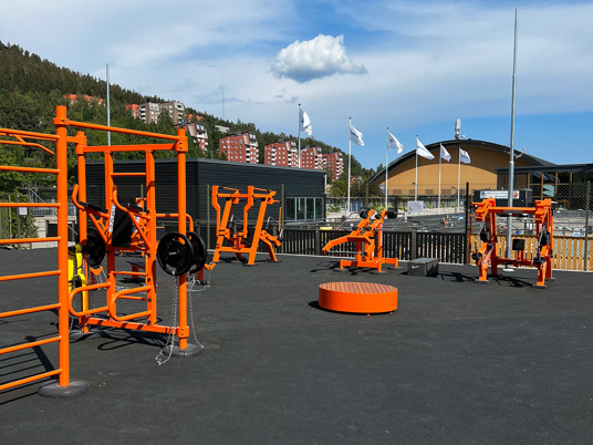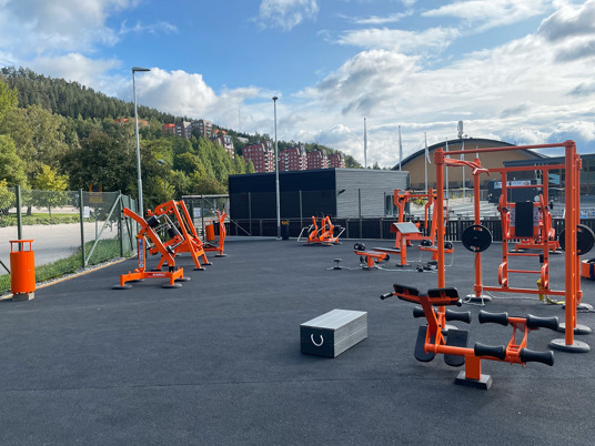 Från outnyttjad grönyta till komplett utegym med 18 olika träningsstationer. Ett otroligt uppsving på en sedan tidigare tom yta. Utegymmet ligger så centralt att det är många som passerar och enkelt kan hoppa in och köra ett pass när andan faller på.