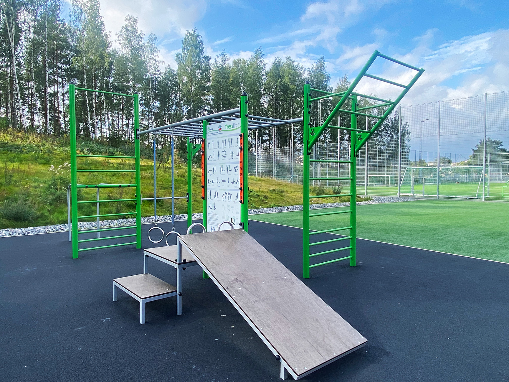 I samband med att kommunen byggde en ny fotbollshall och anlade ny fotbollsplan passade man på att bygga detta utegym. Här vill man erbjuda invånarna en yta där det finns utrymme för spontanidrott, styrketräning och funktionell träning med egen kroppsvikt.