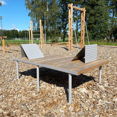 Däremot har vi många produkter utan trä som kan levereras i stort sett omgående, exempelvis Boulder Rocks, gungor, mål, basket, bordtennis, fristående rutschar, klätternät, studsmattor, bänkbord med mera.
