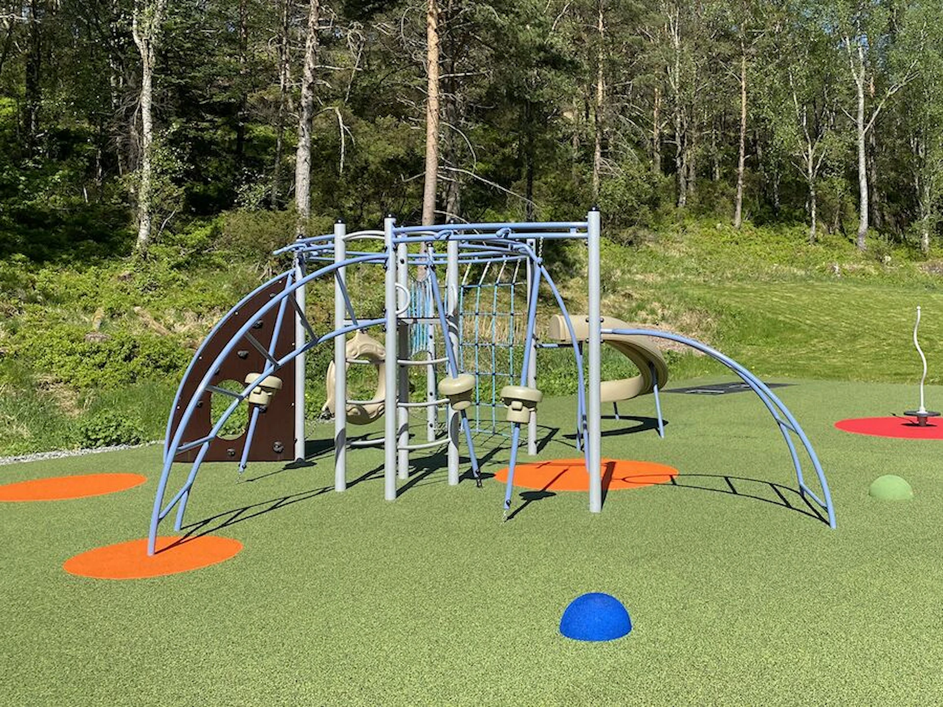 Däremot har vi många produkter utan trä som kan levereras i stort sett omgående, exempelvis Boulder Rocks, gungor, mål, basket, bordtennis, fristående rutschar, klätternät, studsmattor, bänkbord med mera.