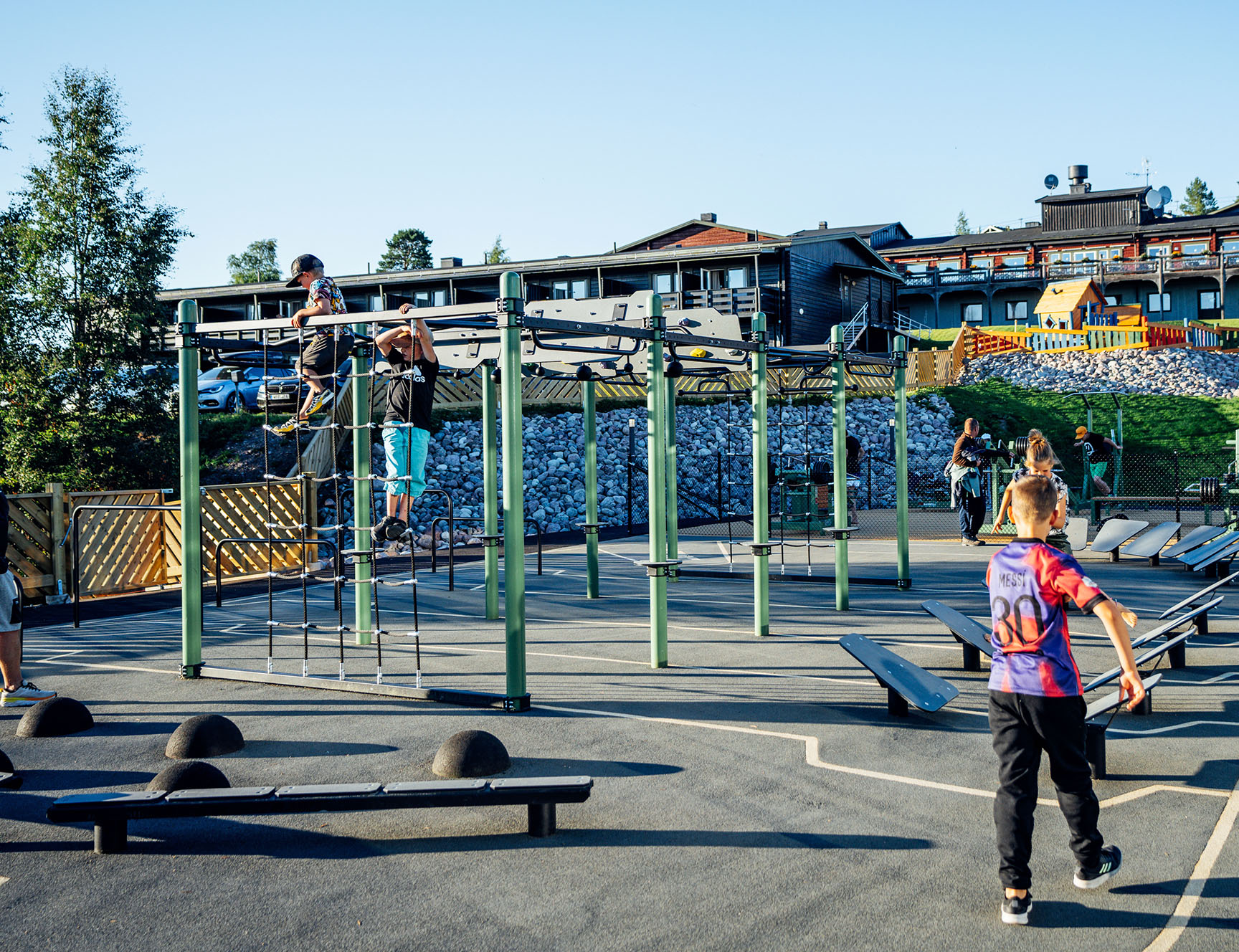 Våra utegym finns i flera olika materialval. För en modern och stilren look rekommenderar vi våra utegym i stål, som är både tåliga och underhållsfria. Om du föredrar ett mer naturligt utseende kan du välja våra utegym i trä, som smälter in fint i parkområden och naturområden. Oavsett vilket material du väljer, är våra utegym utformade för att stå emot väder och vind och erbjuder en säker och effektiv träningsmiljö.