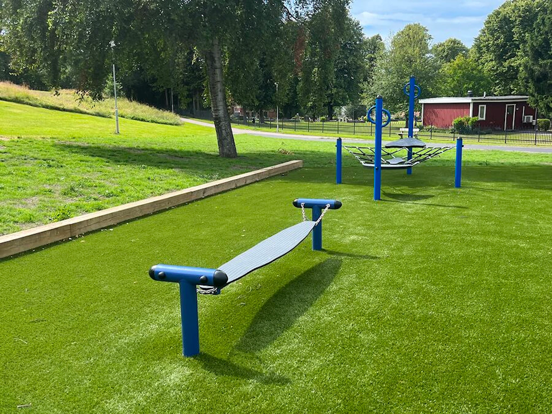 Däremot har vi många produkter utan trä som kan levereras i stort sett omgående, exempelvis Boulder Rocks, gungor, mål, basket, bordtennis, fristående rutschar, klätternät, studsmattor, bänkbord med mera.