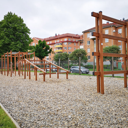 Däremot har vi många produkter utan trä som kan levereras i stort sett omgående, exempelvis Boulder Rocks, gungor, mål, basket, bordtennis, fristående rutschar, klätternät, studsmattor, bänkbord med mera.